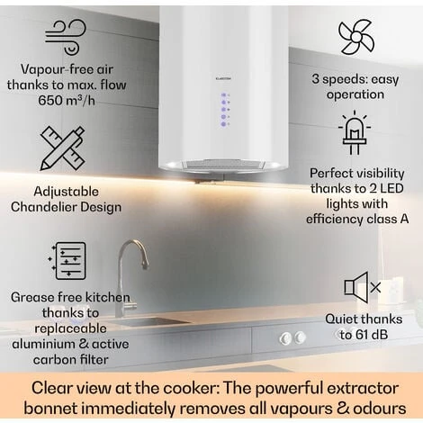 MADE FOR YOUR KITCHEN ISLAND: With a gorgeous chandelier design, our island range is ready to remove fumes. Height adjustable and with LEDs to illuminate your cooking, this range cooker extractor fan will unlock the true potential of your kitchen island.