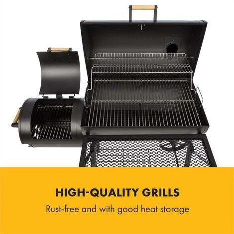 Those who prefer to do without the typical taste of smoke can, of course, also cook exclusively with direct heat. The Beef Brisket grill is also excellently suited for this. With a size of 60 x 39 cm, lots of food fits on the grill grids. After preparation, they are also very easy to clean thanks to the stainless steel. A chrome shelf can be used to keep food warm.