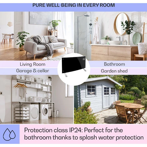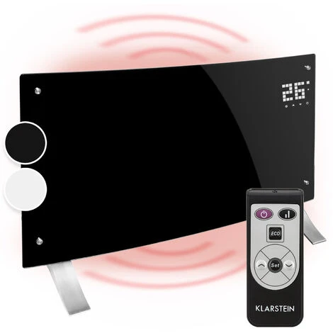 The Klarstein Bornholm Curved convection heater distributes pleasantly warm air in rooms up to 40 m2 in size. The 1,000 or 2,000 watt Klarstein heater heats rooms up to 45 °C via two heating levels. You can use the thermostat to set any desired temperature perfectly. The ECO mode reduces energy consumption to a minimum in an environmentally friendly and money-saving manner, and thanks to the timer function, you can ideally program the operation of the heating. In addition, the convex glass panel of the Klarstein Bornholm Curved is splash-proof, which means that you can also place it in damp rooms. The curved shape gives the Bornholm Curved a particularly elegant appearance, and at the same time ensures improved heat distribution in the room.