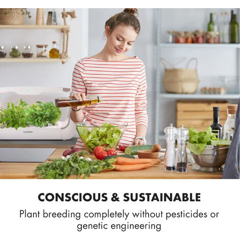 Fresh, sustainable and guaranteed free of pesticides: the Klarstein GrowIt Farm smart indoor garden provides the kitchen with crunchy vegetables and flavourful herbs all year round.