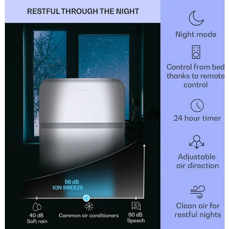 POWERFUL COOLING, QUIET OPERATION: Our air conditioning unit stands out with its 9000 BTU / 2.6kW cooling capacity, covering rooms sized 26 to 44m². Even with this much power they emit only a soft noise, ensuring light sleepers can sleep soundly.