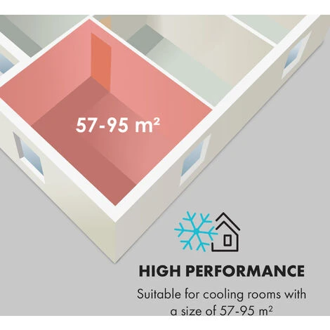 It has a total output of 1,650 watts, a particularly high cooling capacity of 15,00BTU/h (4.4kW) and maximum air flow of 500m³/h, meaning it is able to provide lofts and offices sized between 57-95m² with a cooling breeze with ease. Despite high performance levels, some distinguishing features also include an extraordinary energy balance of 2.6 EER (Energy Efficiency Ratio), Energy Efficiency Rating A as well as air-purifying activated carbon filter. 4 different settings – automatic, cool, dehumidify and ventilate – guarantee perfect ventilation in any environment, with 3 different wind speeds assisting in the process. Manual oscillation and convenient temperature settings ranging between 18°C and 32°C in cooling mode also add to this device’s many uses.