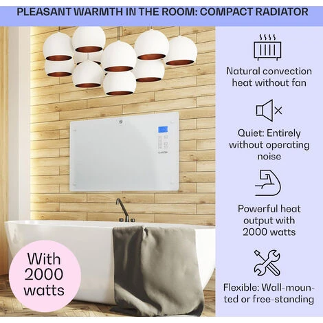 Soothing heat: 2000 W power for temperatures of 15 to 35 ° C in rooms up to 30 m²