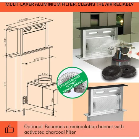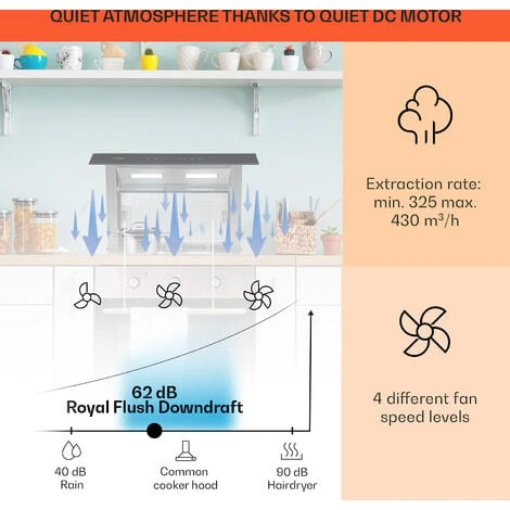 Klarstein Royal Flush Downdraft Cooker Extractor Hood 430 M³ / H 60 Cm