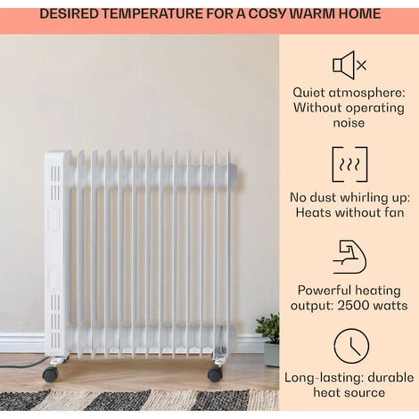 BRING WARMTH AND ELEGANCE INTO YOUR HOME: Our indoor oil radiators create cuddly feelings and a cosy warmth for slipper and pyjama wearers. The Klarstein 2500W low energy convector heater ensures an even distribution of heated air in any room.