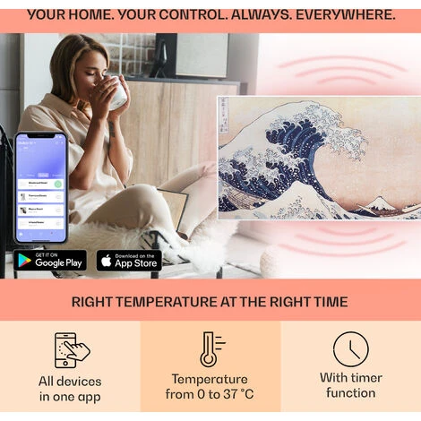 SMART APP CONTROLS WHEREVER YOU ARE: Our app lets you set the desired temperature from your phone wherever you are via WiFI. You can even program one or more infrared heaters to turn on at certain times to return to a warm home or to save energy.