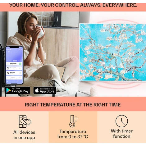 SMART APP CONTROLS WHEREVER YOU ARE: Our app lets you set the desired temperature from your phone wherever you are via WiFI. You can even program one or more infrared heaters to turn on at certain times to return to a warm home or to save energy.